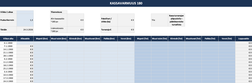 3. Näet heti paljonko rahaa kassassa on 180 päivän päästä
